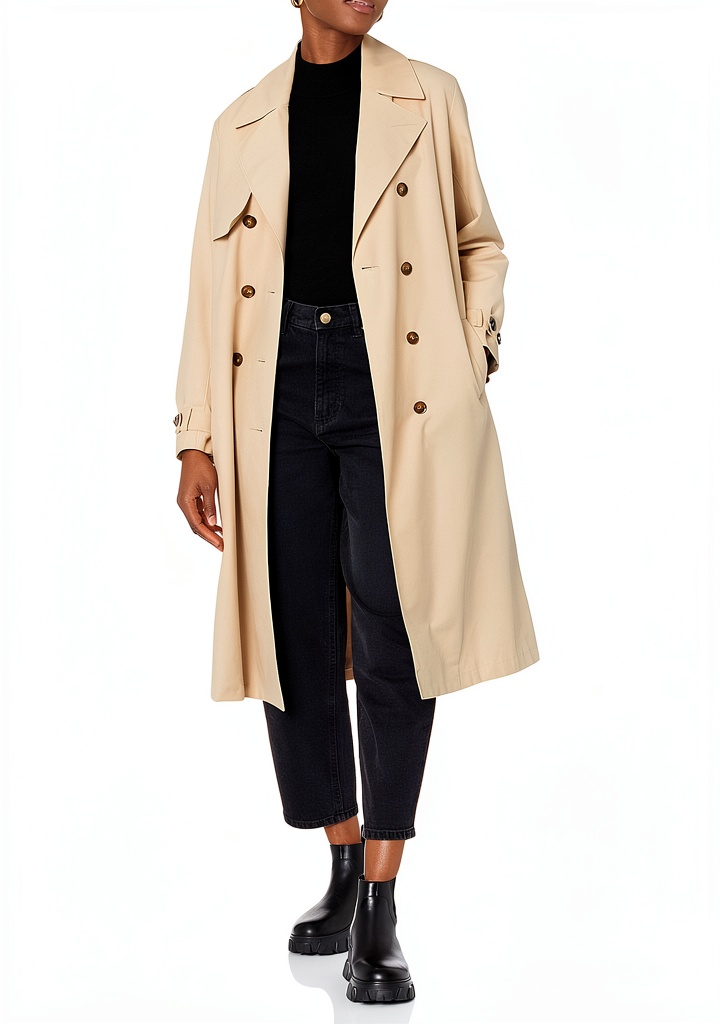 Der Trenchcoat von The Drop ist ein vielseitiges Kleidungsstück für Damen, das aus einer hochwertigen Baumwoll-Nylon-Mischung gefertigt ist. Mit einer lockeren Passform für optimalen Komfort und einer Länge von 117 cm in Größe S bis 119 cm in Größe XXL bietet er eine perfekte Balance zwischen Stil und Funktionalität. Die praktischen Taschen und die langlebige Verarbeitung machen ihn zu einem idealen Begleiter für den Alltag.